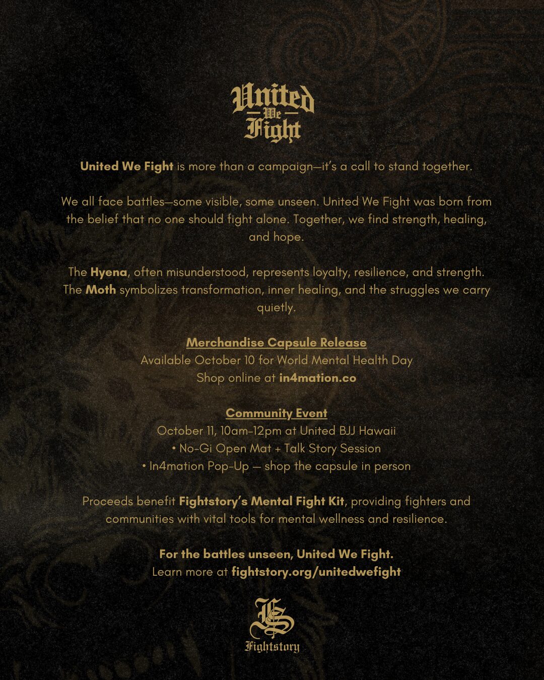 - Shop the Capsule: The limited-edition United We Fight streetwear collection launches October 10, World Mental Health Day, online at in4mation.co.